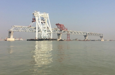 রবিবার সকাল থেকেই শুরু হয় স্প্যান বসানোর আনুষঙ্গিক কাজ। সকাল ৯টার দিকে পিলারের ওপর স্প্যান বসানোর মাধ্যমে দৃশ্যমান হয় প্রায় অর্ধ কিলোমিটারের সেতু। এর আগে শনিবার (১০ মার্চ) বিকেলে ১৫০ মিটার দৈর্ঘ্য ও তিন হাজার ১৪০ টন ওজনের স্প্যান নিয়ে ভাসমান ‘তিয়ান ই’ ক্রেনটি ৩৯ ও ৪০ নম্বর পিলারের কাছে পৌঁছায়। এই ক্রেনের ধারণ ক্ষমতা তিন হাজার ৬০০ টন।