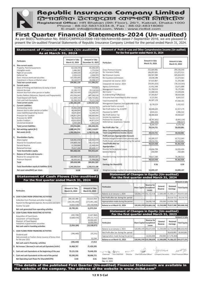 রিপাবলিক ইন্স্যুরেন্সের আর্থিক প্রতিবেদন প্রকাশ