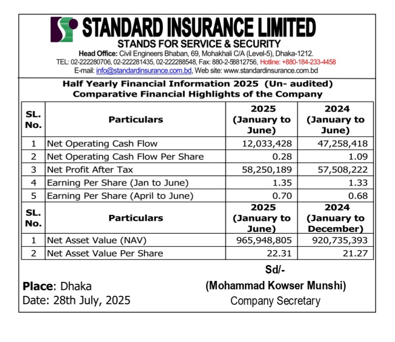 Price Sensitive Information of Standard Insurance Limited. Posted on July 28, 2025July 31, 2025 by kazi Arifur Rahman